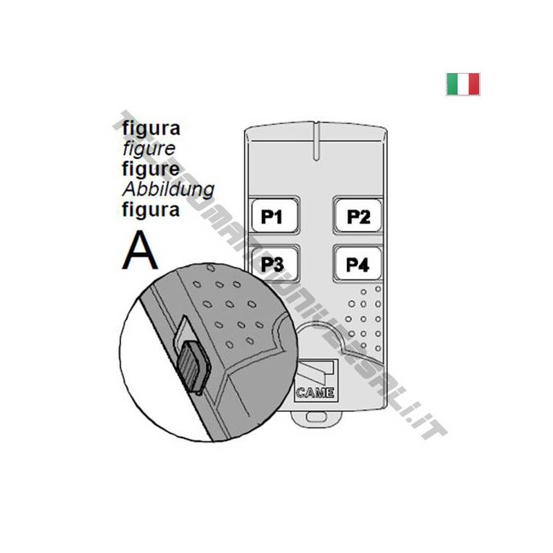 Radiocomando per cancelli CAME modello TAM T438, codice fisso con frequenza 433.92 Mhz. Questo modello può comandare fino ad otto automazioni. Fuori produzione