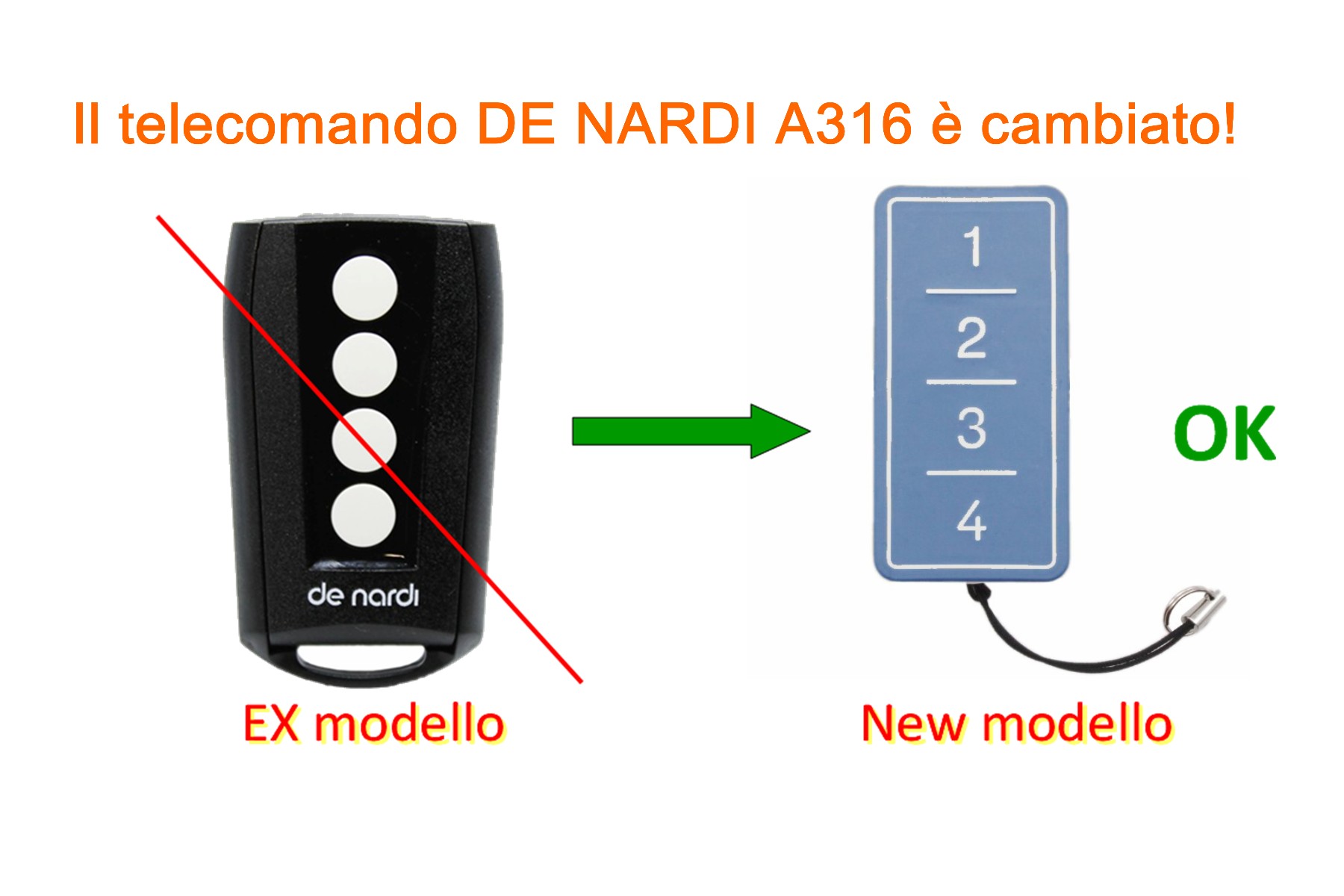 QUESTO NUOVO TELECOMANDO E’ UN RICAMBIO ORIGINALE DE NARDI.